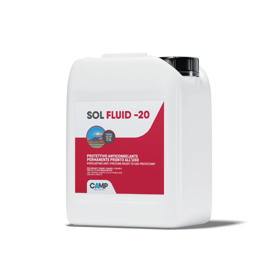 Fluido termovettore anticongelante permanente, a base di glicole propilenico puro atossico, specifico per la protezione permanente degli impianti a pannelli solari termici e degli impianti a uso alimentare. Non provoca fenomeni di corrosione poiché contiene specifici inibitori che garantiscono una protezione globale verso i metalli, in modo particolare verso quelli di cui sono costituiti i circuiti di raffreddamento o riscaldamento.