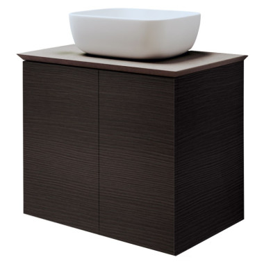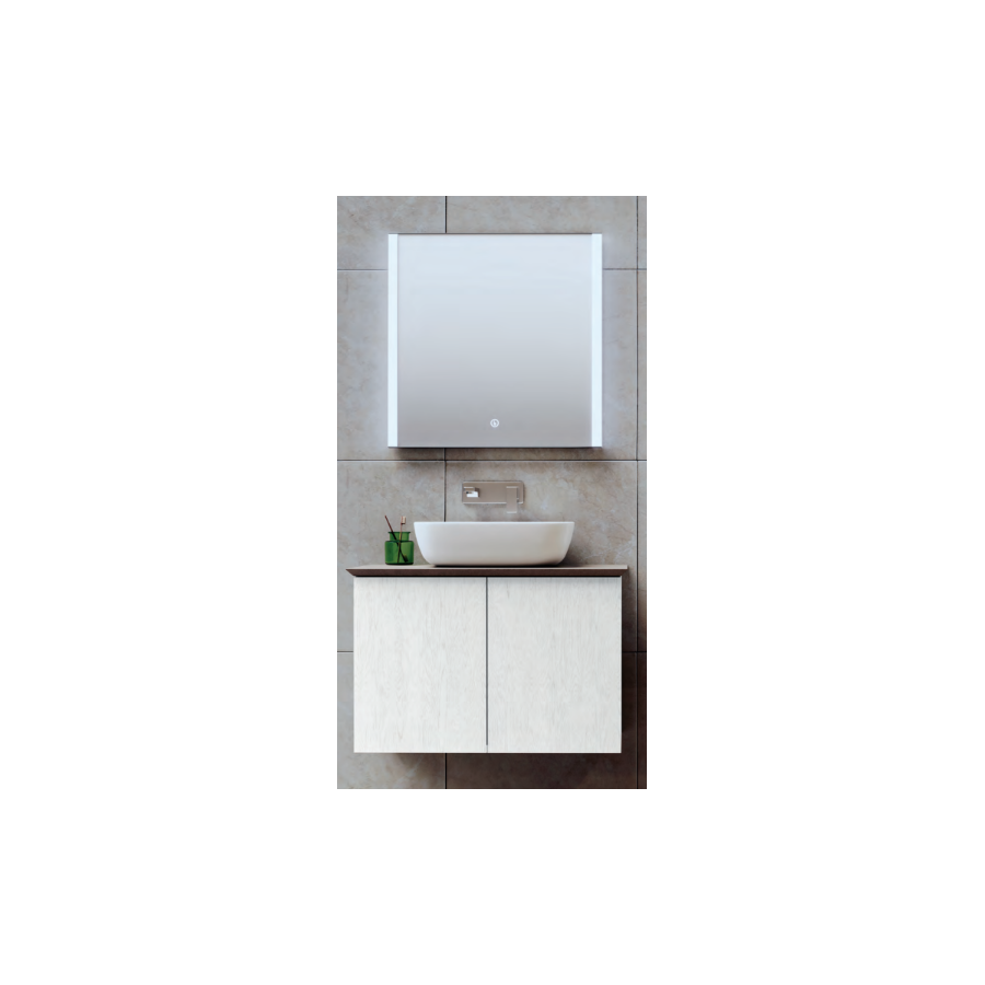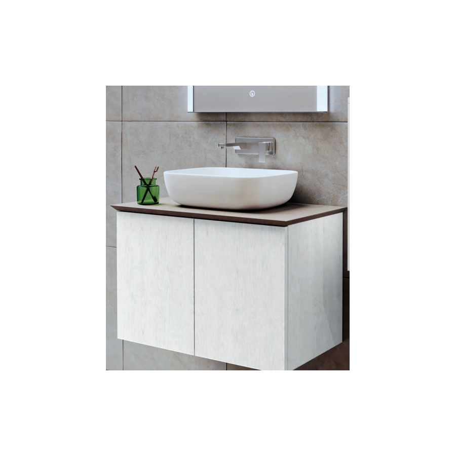 Mobile con 2 ante a chiusura rallentata, larghezza da mm 600-700-800. Lavabi da mobile in ceramica o marmoresina, top dedicati per combinazioni con lavabi da appoggio. Senza miscelatore.