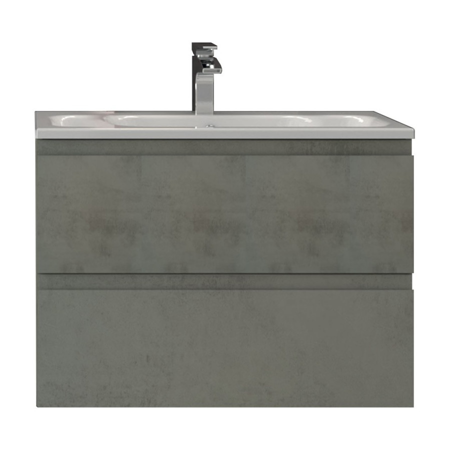 Linea di mobili sospesi con 2 cassetti rallentati e finiture in pvc , frontale con maniglia integrata. Per lavabi in ceramica o mineralmarmo.