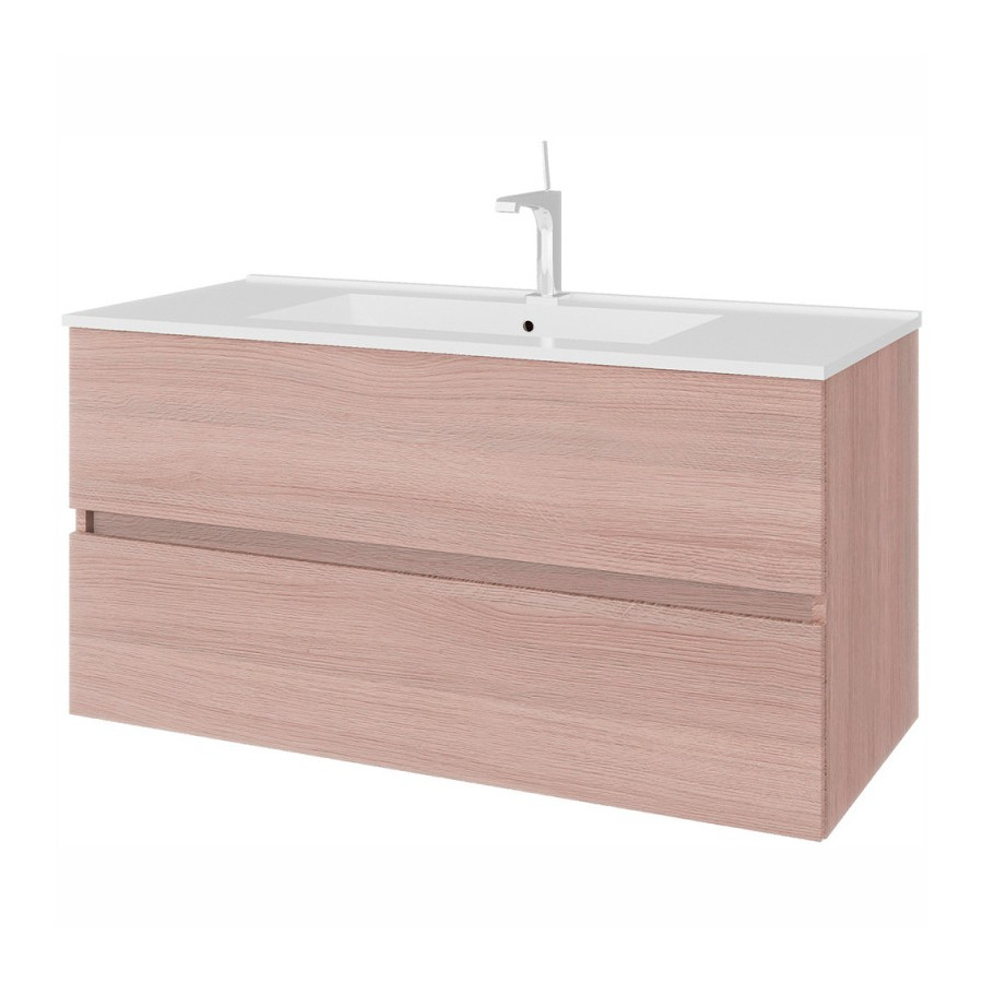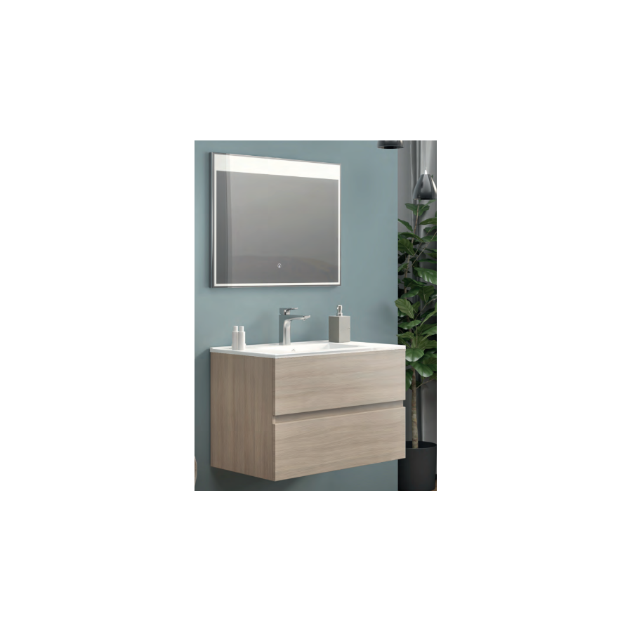 mobile da bagno sospeso con 2 cassetti a chiusura rallentata, completa di lavabo in ceramica. Senza miscelatore.