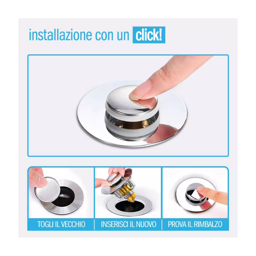 Tappo piletta click clack. Per sostituzione dei tappi piletta classici. Facile da installare.chiunque può installare lo scarico pop-up grazie alla sua struttura semplice. Se si desidera utilizzarlo per un diametro del foro maggiore, possibile utilizzare l''anello di gomma che abbiamo incluso per aumentare il diametro interno del tappo del lavandino