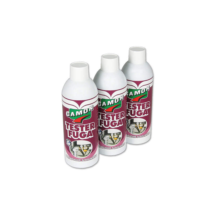 Rilevatore spray della Camon per l'individuazione rapida di fughe di gas e/o aria. Grazie alla sua formulazione, schiumosa, permette applicazioni anche in verticale. Viene fornito in una speciale bombola in alluminio.